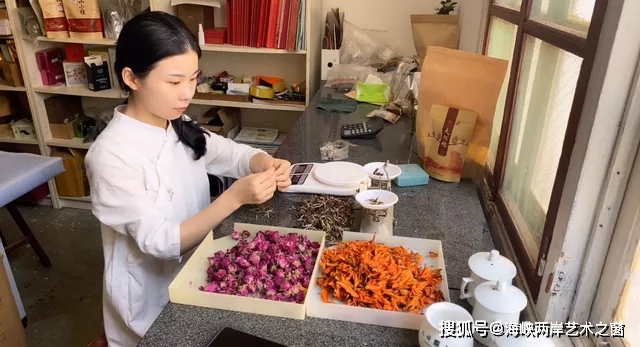 將茶球輕輕放入熱水,不一會(huì),花瓣在水中慢慢綻放,露出花蕊,好似清水出芙蓉,又如同少女翩翩起舞。坐在案臺(tái)前,李陽正在認(rèn)真地觀察著花舞茶在水中的姿態(tài)。李陽是福建師范大學(xué)的一名在讀碩士研究生,也是花舞茶工藝的第二代傳承人,除了完成學(xué)業(yè)外,她幾乎都在花舞茶實(shí)驗(yàn)室,通過反復(fù)測驗(yàn),潛心研發(fā)新口味的產(chǎn)品。11月5日,記者在福建師范大學(xué)約訪了李陽。