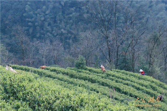 “這一片基地已經(jīng)是今年第二次采摘了,今年天氣好,早茶生長(zhǎng)很快,品質(zhì)也很高。”春日暖陽照耀下,湖南省常德市桃源縣楊溪橋鎮(zhèn)蔡家塘村的里寶山有機(jī)茶園基地,迎來了早茶采摘的黃金時(shí)間。采茶工們正在動(dòng)作熟練的采摘茶葉,桃源縣君和野茶開發(fā)有限公司董事長(zhǎng)詹立君興致勃勃地向記者介紹著里寶山有機(jī)茶園基地情況和今年茶葉的長(zhǎng)勢(shì)。