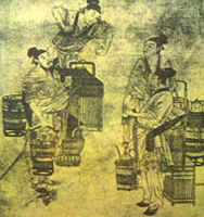 我國以茶為題材的古代繪畫,現(xiàn)存或有文獻記載的多為唐代以后的作品。如唐代的《調琴啜茗圖卷》;南宋劉松年的《斗茶圖卷》;元代趙孟俯的《斗茶圖》;明代唐寅的《事茗圖》,文征明的《惠山茶會圖》、《烹茶圖》,丁云鵬的《玉川煮茶圖》;等等。