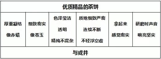 有的茶餅表面光彩而內(nèi)在灰暗,也有的茶餅內(nèi)里實在潔凈而外表質(zhì)樸。茶餅外表如同人的容貌各不相同,很難一概而論??偠灾?,色澤瑩潔透明并且顏色不混雜,質(zhì)地細致嚴密而不輕浮,拿起來感覺密實,碾碎時聲音清亮,這些都可以表明是精品好茶。茶葉的鑒別,有的可以通過具體的言語和意旨來表達,有的只能心中領(lǐng)會了。