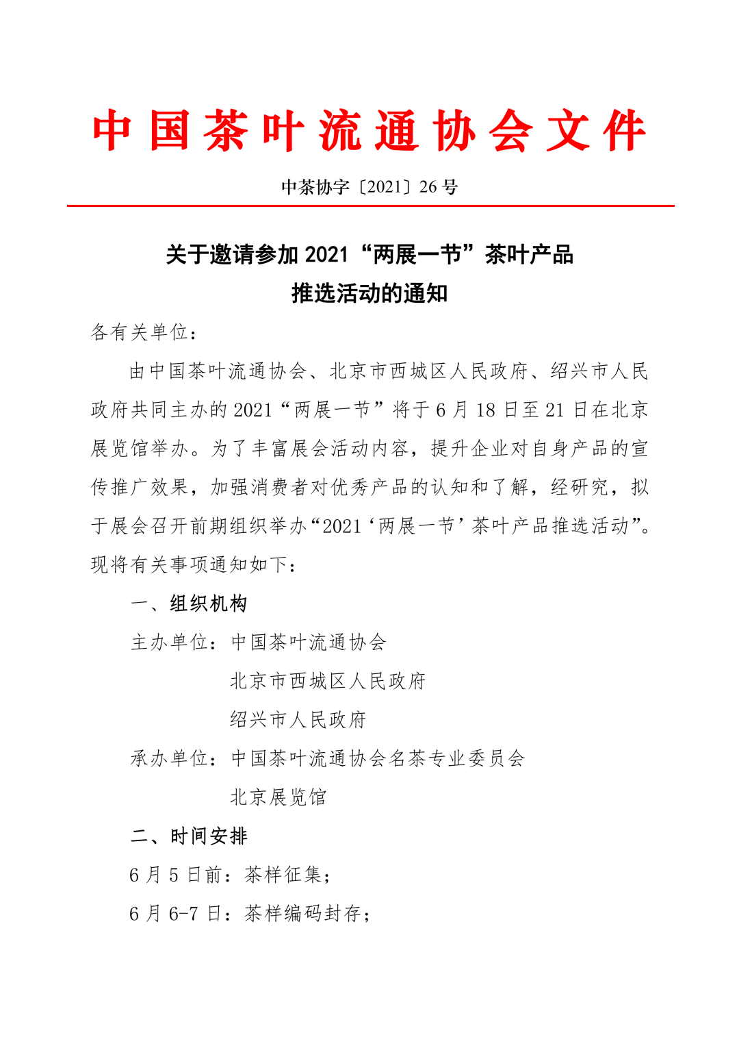 中國茶葉流通協(xié)會關于邀請參加2021“兩展一節(jié)”茶葉產(chǎn)品推選活動的通知