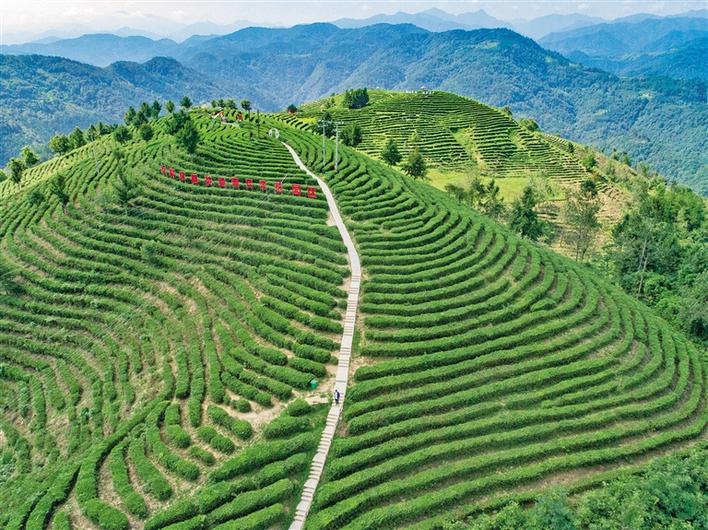 8月5日,航拍平利縣老縣鎮(zhèn)蔣家坪村女?huà)z鳳凰茶業(yè)有限公司茶園。
