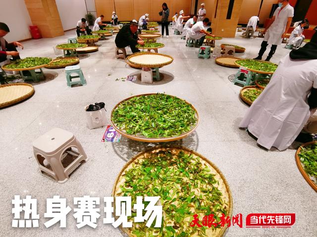 熱身賽現(xiàn)場,20余位身著白色大褂的行家里手細(xì)致地挑摘著鮮葉。為保證比賽公平,比賽使用的茶葉均是舉辦方統(tǒng)一提供的習(xí)水古樹茶。