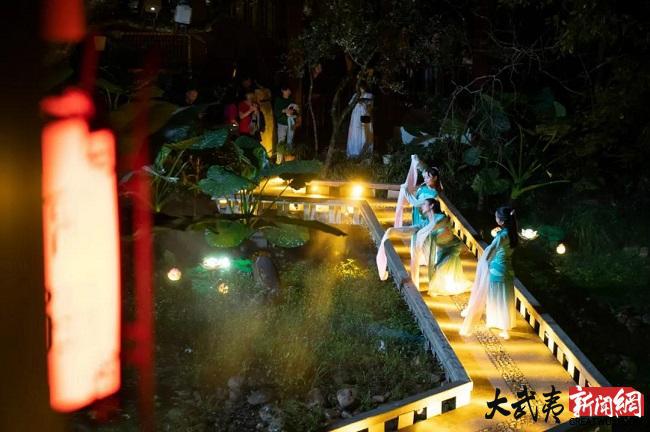 中秋之夜,月滿情濃。武夷山宋街景區(qū)內(nèi),流光溢彩,人流如織。吃茶、聽(tīng)曲、猜燈謎......伴隨著古街內(nèi)的典雅的古琴聲“宋風(fēng)當(dāng)潮 · 武夷月夕”活動(dòng)擺茶開(kāi)席,歌舞秀+民俗表演,將歷史上武夷山中秋夜民間祭月的場(chǎng)景予以復(fù)原,讓現(xiàn)場(chǎng)游人穿越時(shí)空,感受傳統(tǒng)中秋的賞月民俗。